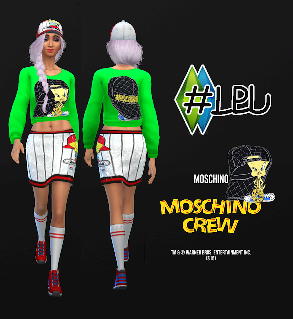 También mostraros la colección de Moschino, que se titula Moschino Crew, es una colección cápsula, consta de 6 ítems entre vestidos, croptops, minifaldas, todas con varias versiones, el vestido beisbolero como el croptop, la mesh es de sentate